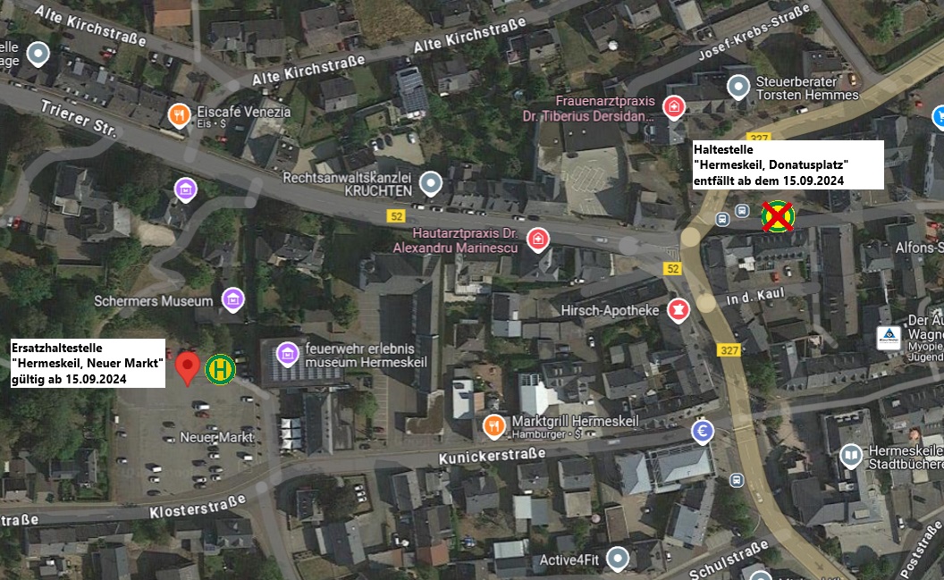 Zum 14.12.2025 wird die reguläre Haltestelle Hermeskeil, Donatusplatz angefahren.
